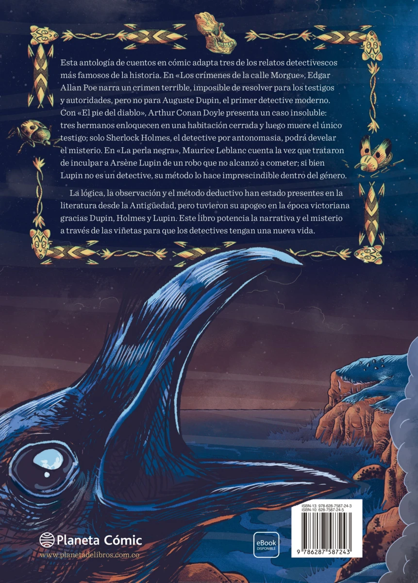 Esta antología de cuentos en cómic adapta tres de los relatos detectivescos más famosos de la historia literaria. En «Los crímenes de la calle Morgue», Edgar Allan Poe narra un crimen terrible, imposible de resolver para los testigos y autoridades, pero no para Auguste Dupin, el primer detective...