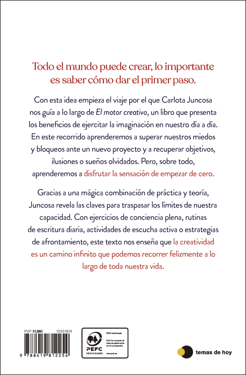 Con esta idea empieza el viaje por el que Carlota Juncosa nos guía a lo largo de El motor creativo, un libro que presenta los beneficios de ejercitar la imaginación en nuestro día a día. En este recorrido aprenderemos a superar nuestros miedos y bloqueos ante un nuevo proyecto y a recuperar objetivos, ilusiones o...