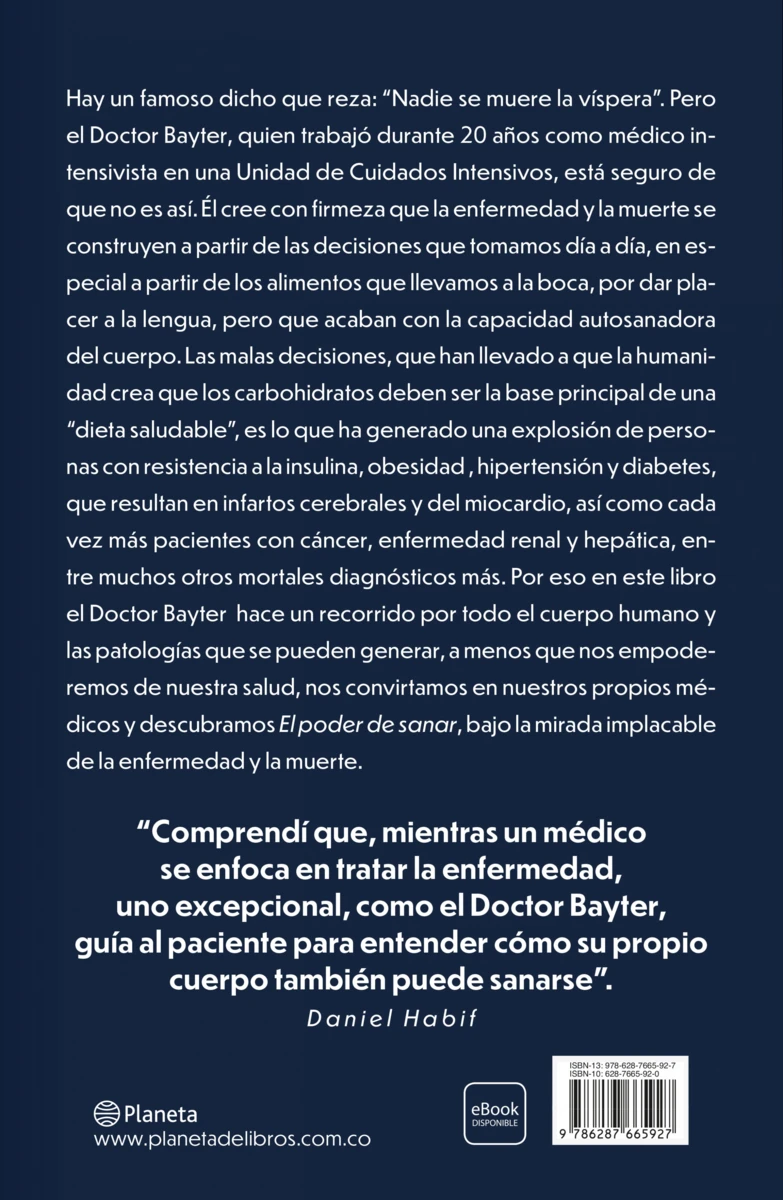 Hay un famoso dicho que reza: “Nadie se muere a la víspera”. Pero el Doctor Bayter, quien trabajó durante 20 años como médico intensivista en una Unidad de Cuidados Intensivos, está seguro de que no es así. Él cree con firmeza que la enfermedad y la muerte se construyen a partir de las decisiones que...