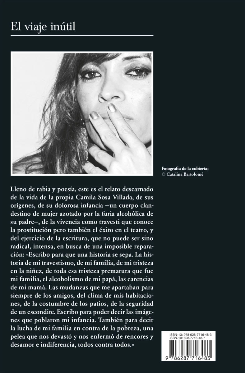 Camila Sosa Villada nació en 1982 en La Falda (Córdoba, Argentina). Estudió cuatro años de Comunicación Social y otros cuatro de la licenciatura de Teatro en la Universidad Nacional de Córdoba. En 2009 estrenó su primer espectáculo, Carnes tolendas, retrato escénico de un travesti. En 2011 da vida al personaje de Ale en la película Mía. En 2012 actuó en la miniserie La viuda de Rafael. En 2014 protagoniza El bello indiferente, de Jean Cocteau. En 2015, Despierta, corazón dormido/Frida. En 2016, Putx madre y en 2017 El cabaret de la Difunta Correa y la miniserie La chica que limpia. Además, es autora del libro de poesía La novia de Sandro (2015) y de un ensayo autobiográfico titulado El viaje inútil (2018). Fue prostituta, mucama por horas y vendedora ambulante. A veces canta en bares.