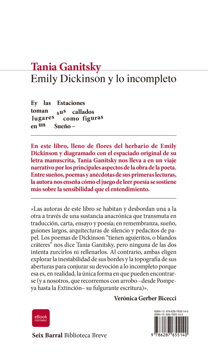 Contraportada Emily Dickinson y lo incompleto