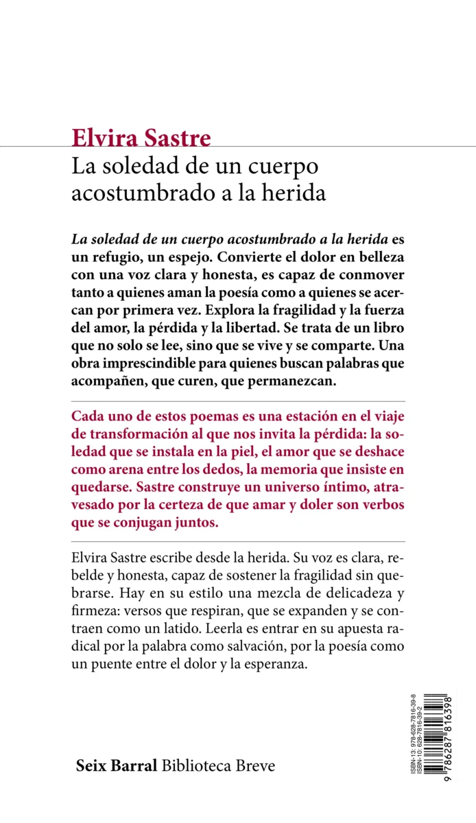 La soledad de un cuerpo acostumbrado a la herida es ese libro espejo que transforma el dolor en una descarga eléctrica de belleza: una poesía suave y rebelde que acompaña, cura y revela quién eres… incluso cuando intentas olvidarlo