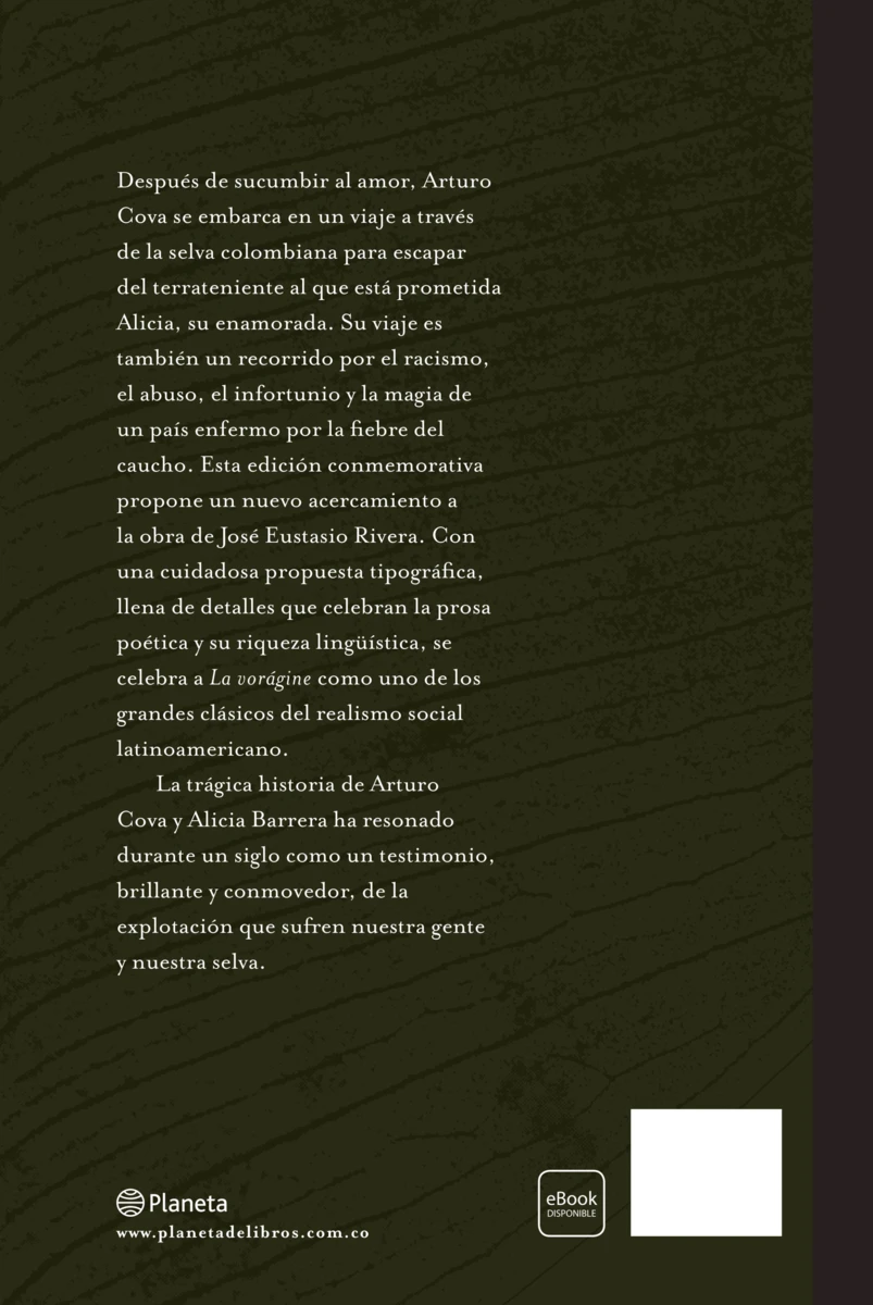 Sumérgete en una aventura épica por la selva colombiana con esta edición conmemorativa de La Vorágine, el gran clásico del realismo social latinoamericano que cumple 100 años.