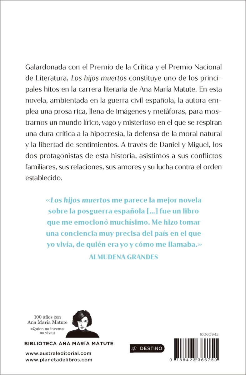 Los hijos muertos constituye uno de los principales hitos en la carrera literaria de Ana María Matute. Daniel Corvo y Miguel Fernández son los dos protagonistas de esta novela. Con el telón de fondo de la posguerra, la autora emplea una prosa rica, llena de imágenes en la que se respira una dura crítica a la...