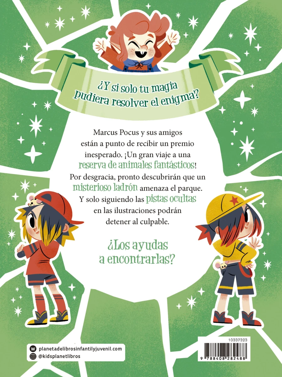 Marcus Pocus y sus amigos están a punto de recibir un premio inesperado. ¡Un gran viaje a una reserva de animales fantásticos! Por desgracia, pronto descubrirán que un misterioso ladrón amenaza el parque. Y solo siguiendo las pistas como buenos detectives podrán resolver el caso y descubrir al culpable. |