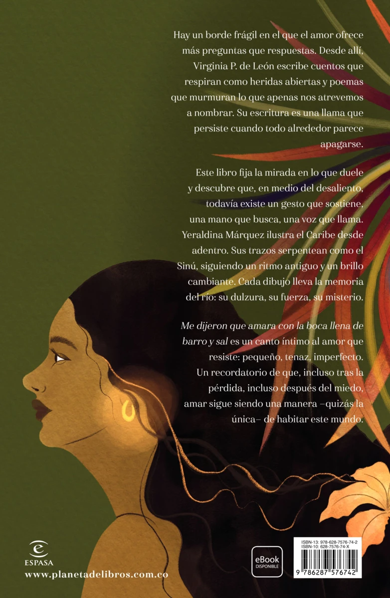 Virginia Petro De León nació en Mateo Gómez, Córdoba, un pueblo con nombre de hombre y un cementerio en la entrada. Es autora del libro Después del amor, nosotras y se ha dedicado en el último año a viajar por Colombia encontrándose con sus lectoras: en su mayoría mujeres, en su mayoría diversas, en su mayoría negras. Sus poemas han sembrado conversaciones en torno al abuso, la vulnerabilidad, el racismo, pero sobre todas las cosas: el amor. Me dijeron que amara con la boca llena de barro y sal es su primer libro de cuentos (así se le colaran algunos poemas).