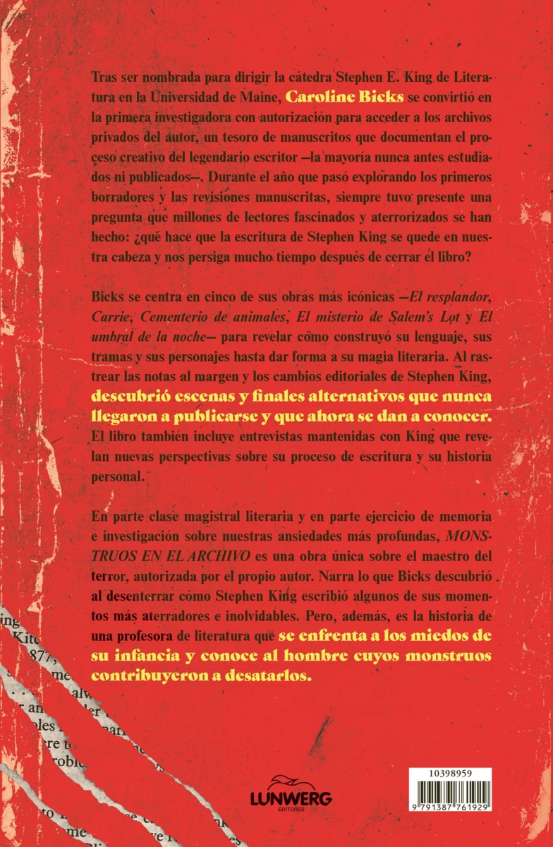 Caroline Bicks es la responsable de la catedra Stephen E. King de Literatura en la Universidad de Maine y ha sido docente en la Bread Loaf School of English. Además de Monstruos en el acrchivo: mi año de terror con Stephen King, es autora de Cognition and Girlhood in Shakespeare’s World (2021) y Midwiving Subjects in Shakespeare’s England (2003 y 2017).