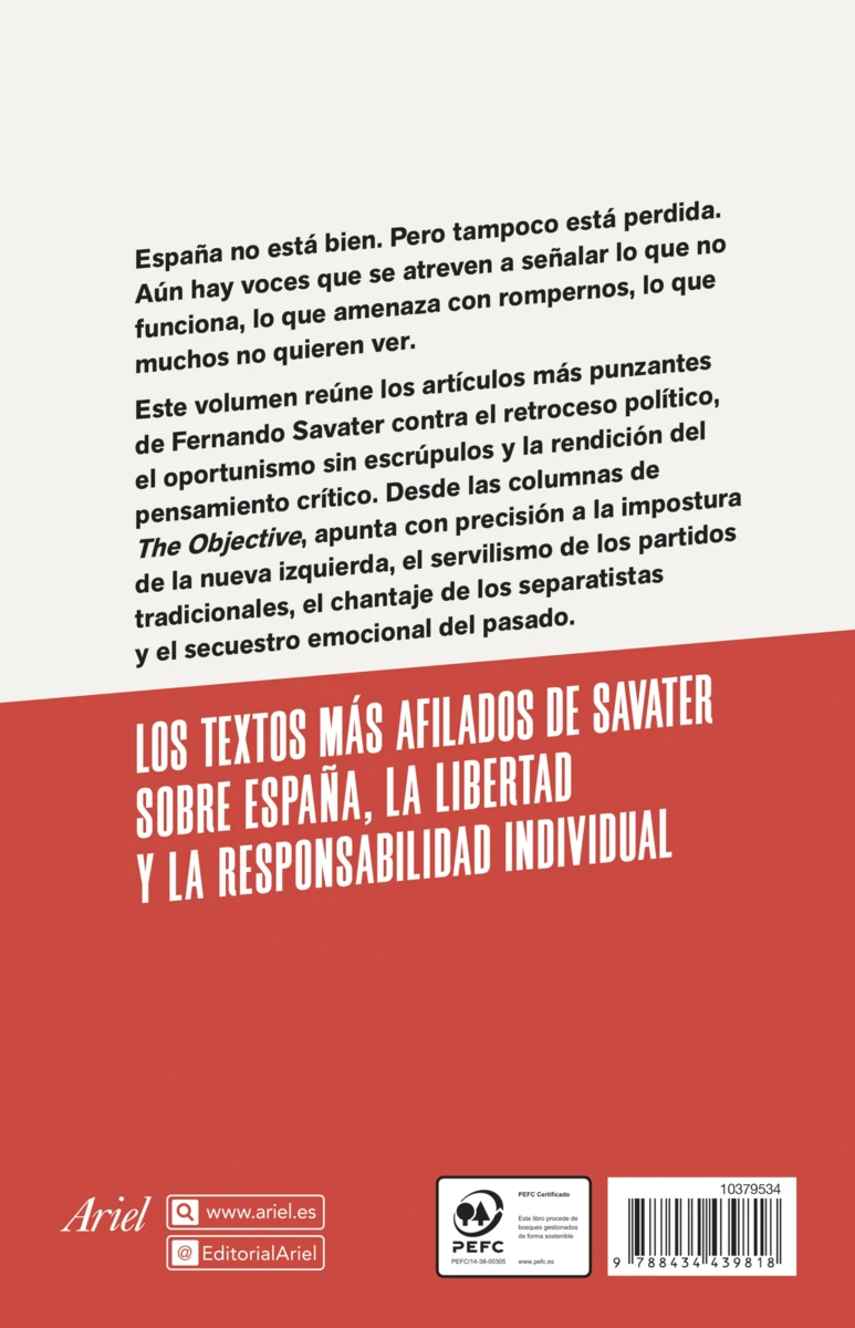 España no está bien. Pero tampoco está perdida. Aún hay voces que se atreven a señalar lo que no funciona, lo que amenza con rompernos, lo que muchos no quieren ver. Este libro recoge los textos más provocadores de Fernando Savater contra el retroceso político, el oportunismo sin escrúpulos y la...
