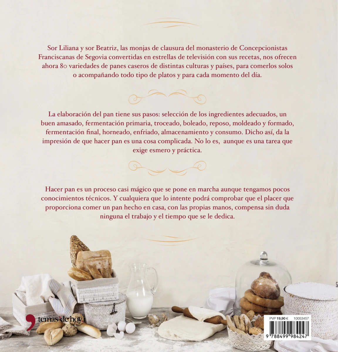 Sor Liliana y sor Beatriz, las monjas de clausura del monasterio de Concepcionistas Franciscanas de Segovia convertidas en estrellas de televisión con sus recetas, nos ofrecen ahora 80 variedades de panes caseros de distintas culturas y países, para comerlos solos o acompañando todo tipo de platos y para cada momento del día.