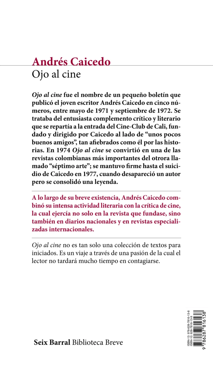 Ojo al cine fue el nombre de un pequeño boletín que publicó el joven escritor Andrés Caicedo en cinco números, entre mayo de 1971 y septiembre de 1972. Se trataba del entusiasta complemento crítico y literario que se repartía a la entrada del Cine-Club de Cali, fundado y dirigido por Caicedo al lado de “unos pocos buenos...