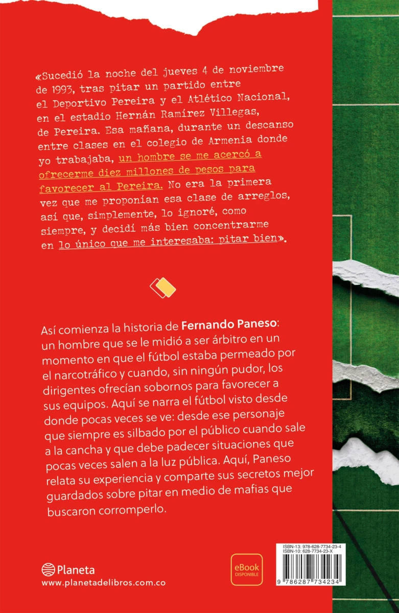 "Ser árbitro de fútbol en cualquier lugar, más en Colombia, es una actividad masoquista. Eso se podrá comprobar a través de este libro de Fernando Paneso con el que cuenta su historia", del prólogo de Hernán Peláez.