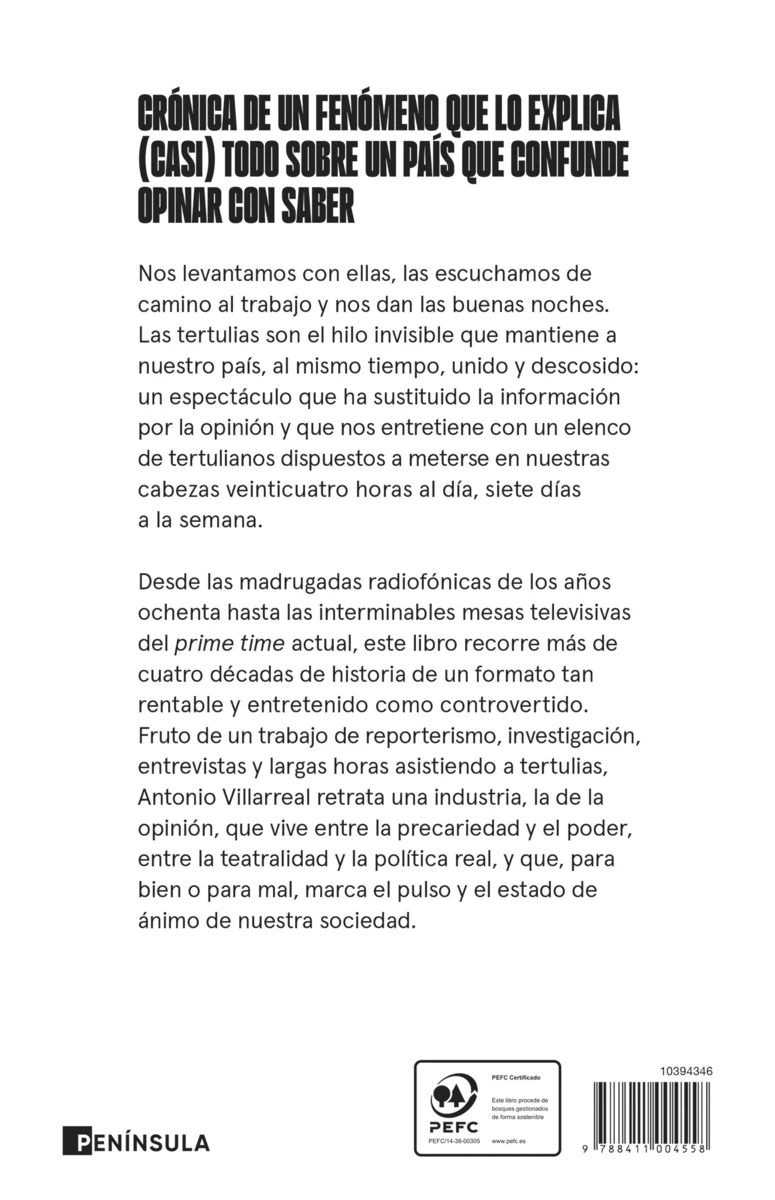 Nos levantamos con ellas, las escuchamos de camino al trabajo y nos dan las buenas noches. Las tertulias, hoy, son el hilo invisible que mantiene a nuestro país, al mismo tiempo, unido y descosido: un espectáculo que ha sustituido la información por la opinión y que nos entretiene con un elenco de...