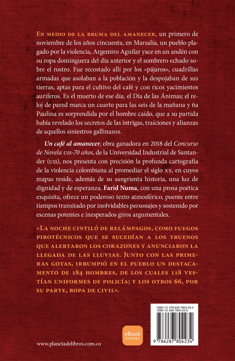 En medio de la bruma del amanecer, un primero de noviembre de los años cincuenta, en Marsalia, un pueblo plagado por la violencia, Argemiro Aguilar yace en un andén con su ropa dominguera del día anterior y el sombrero echado sobre el rostro. Fue recostado allí por los «pájaros», cuadrillasarmadas que asolaban a la población y la despojaban de sus tierras, aptas para el cultivo del café...