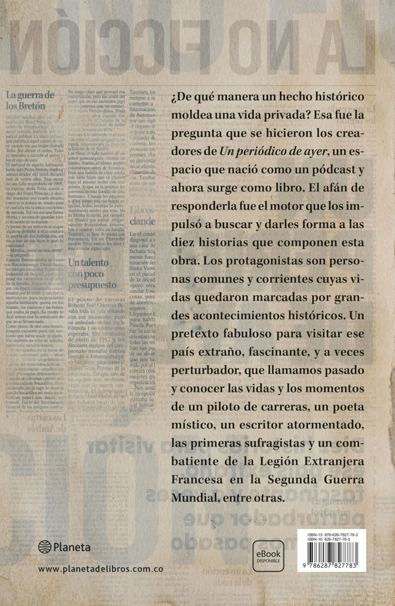 ¿De qué manera un hecho histórico moldea una vida privada? Esa fue la pregunta que se hicieron los creadores de Un periódico de ayer, un espacio que nació como un pódcast y ahora surge como libro. El afán de responderla fue el motor que los impulsó a buscar y darles forma a las diez historias que componen esta obra. Los...