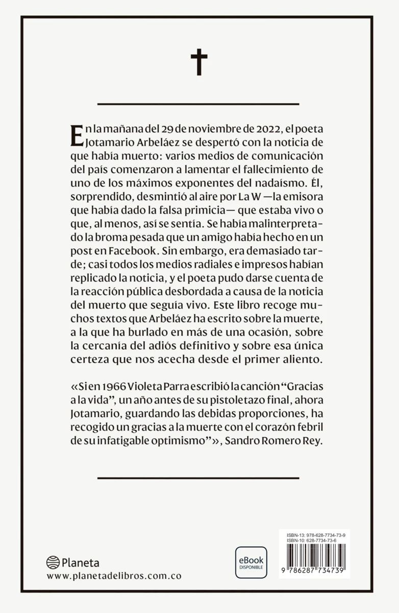 “Si en 1966 Violeta Parra escribió la canción «Gracias a la vida», un año antes de su pistoletazo final, ahora Jotamario, guardando las debidas proporciones, ha recogido un gracias a la muerte con el corazón febril de su infatigable optimismo”, del prólogo de Sandro Romero Rey.
